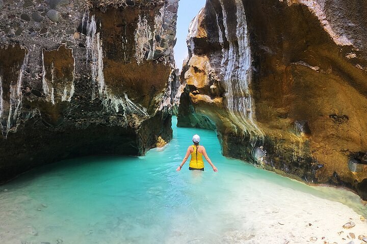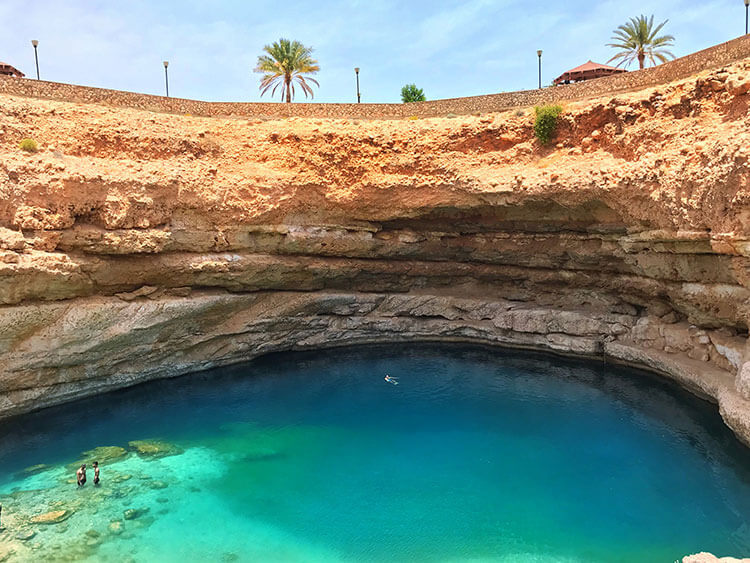 Wadi Shab offers a combination of hiking, swimming through turquoise pools, and exploring a hidden cave with a waterfall.